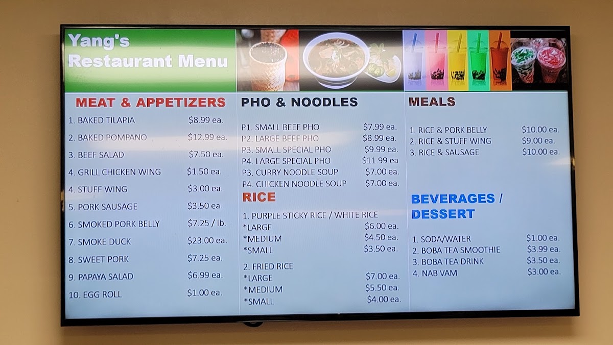 Yang’s Restaurant Menu (2025 Update)